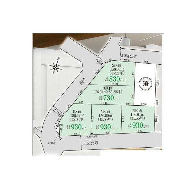 | 用途地域 | 1種低層 | 接道状況 | 北5.2m 公道 接面9.2m 西5.7m 公道 接面11.4m |